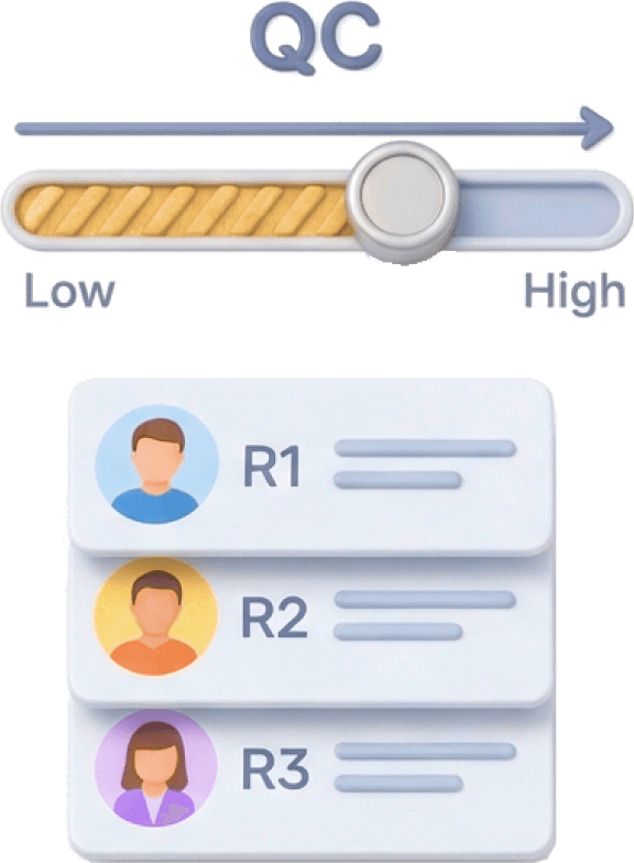 Configurable second/third reads + sampling to reduce rework, escalations, and client-facing risk.